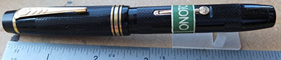 ono178: A nice mechanically-sound Onoto piston-filled fountain pen in black chased finish with a fine grade 14ct gold nib; this pen dates from 1920 or thereabouts. £95.00 SOLD |