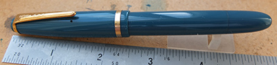 ono151: A very functional used Onoto K4 piston-filled fountain pen in blue with a broad grade 14ct gold nib; this pen dates from 1955 or thereabouts £55.00 SOLD |