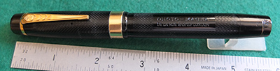 ono170: A very nice Onoto Magna 1703 lever-filled fountain pen in black chased finish with a broadish medium grade 14ct gold single-colour No.7 nib; this pen dates from 1947 or thereabouts. £725.00 SOLD |