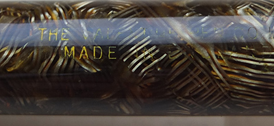 Here is a very nice lever-fill fountain pen in green and silver with gold-plated trim. The pen has a fine grade 14ct gold Valentine nib; there is no sign of wear on the barrel where the cap posts but just a feint sign where the cap fits however, there is no other damage. The plating on the lever and the clip is poor but the cap band is good; the clip has a worn 'V' just about visible and the imprint is readable.
