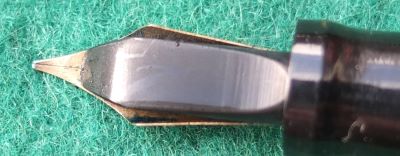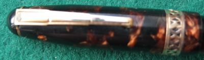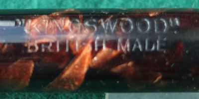 Here is a very nice lever-fill Kingswood fountain pen in burgundy and black with gold-plated trim. The pen has a fine grade 14ct gold Eversharp nib; its beautiful to write with especially the flex; there is no sign of wear on the barrel where the cap posts or where the cap fits and there is no other damage. The plating on the lever, the band, and the clip is good; the imprint is crisp. These pens were made by Eversharp around 1946 in London and claimed to be 'the best pens available in Britain today'. Its in lovely condition